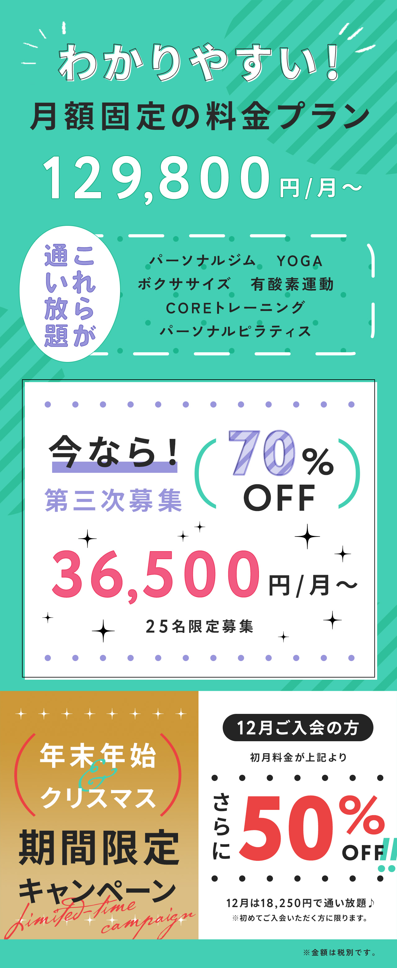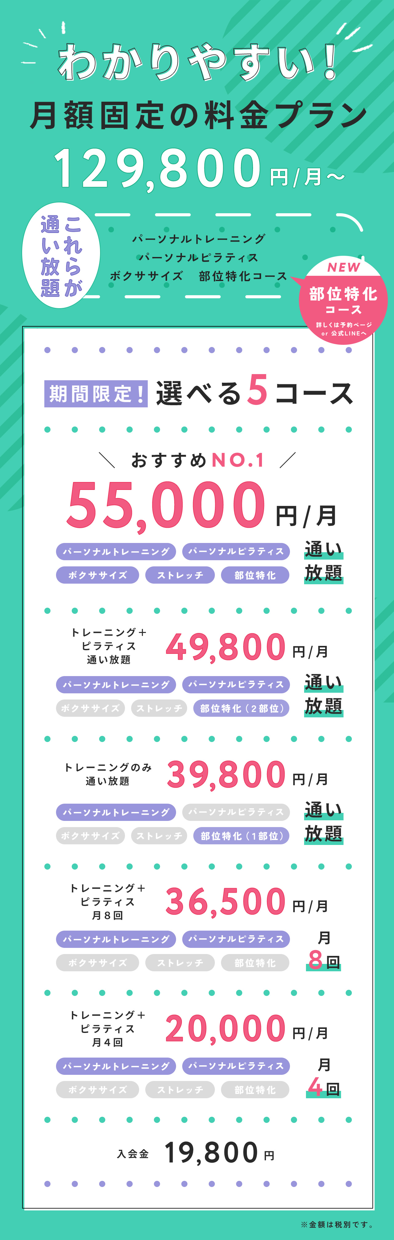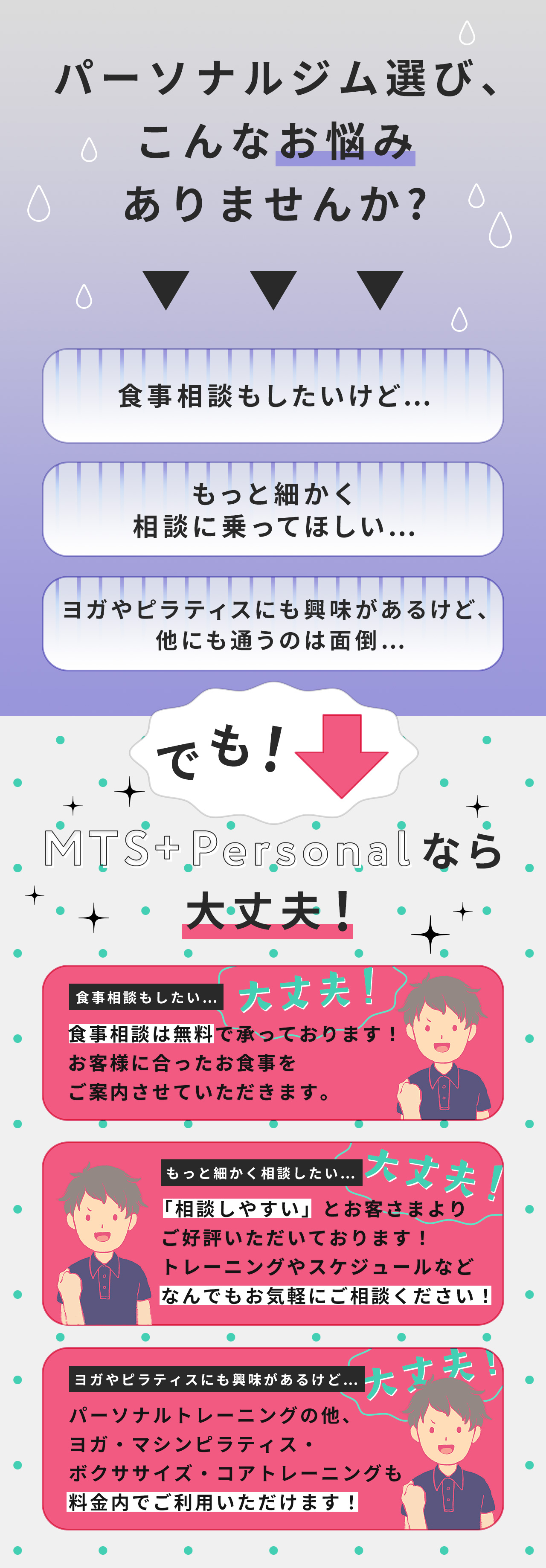 八王子駅徒歩2分のパーソナルジム MTS+ Personal 女性専用・通い放題・完全個室 パーソナルトレーニング・ヨガ・マシンピラティス・ボクササイズ・コアトレーニング 全て通い放題!オールインワンジム
